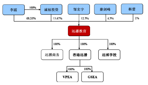 截至本公開轉讓說明書簽署日,遠播教育的股權結構如下圖所示: