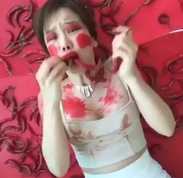韓國(guó)女主播Showry躺在紅毯上吃紅辣椒