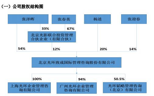 截至7月27日,光環(huán)國(guó)際全資擁有一家子公司上海光環(huán)企業(yè)管理咨詢(xún)有限公司,控股兩家子公司廣州光環(huán)企業(yè)管理咨詢(xún)有限公司(持股比例為94%)和光環(huán)韜略管理咨詢(xún)(北京)有限公司(持股比例為 50.5%),擁有一家子公司北京光環(huán)致成國(guó)際管理咨詢(xún)有限公司昌平分公司。