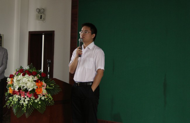 圖為2011年,張邦鑫在深圳分校分享企業(yè)文化。