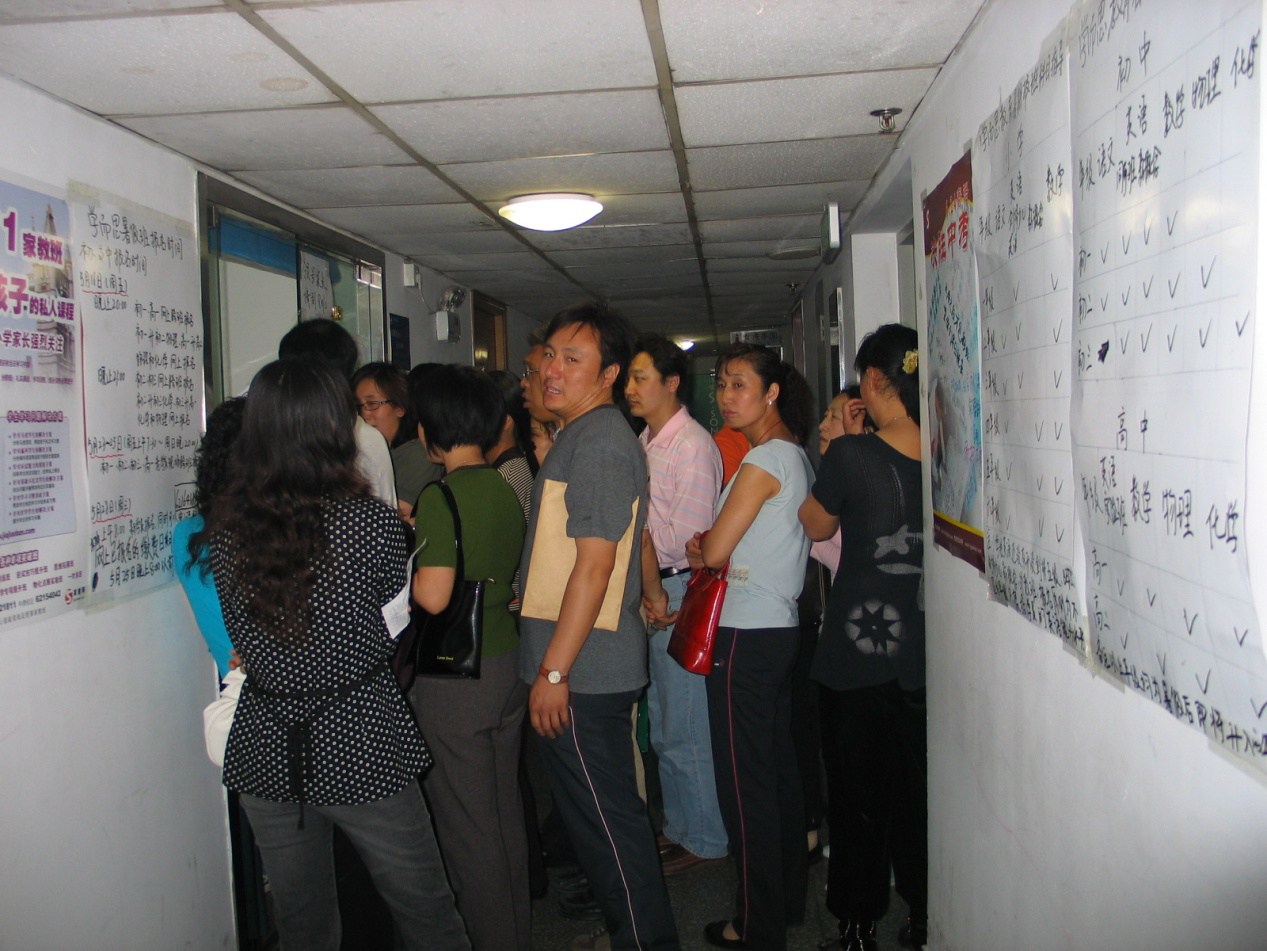 2006年的一個凌晨,合上講義的幾位學而思老師正要離開辦公室,卻發(fā)現(xiàn)一群自帶“馬扎”的家長正坐在初一新招生報名的門前。