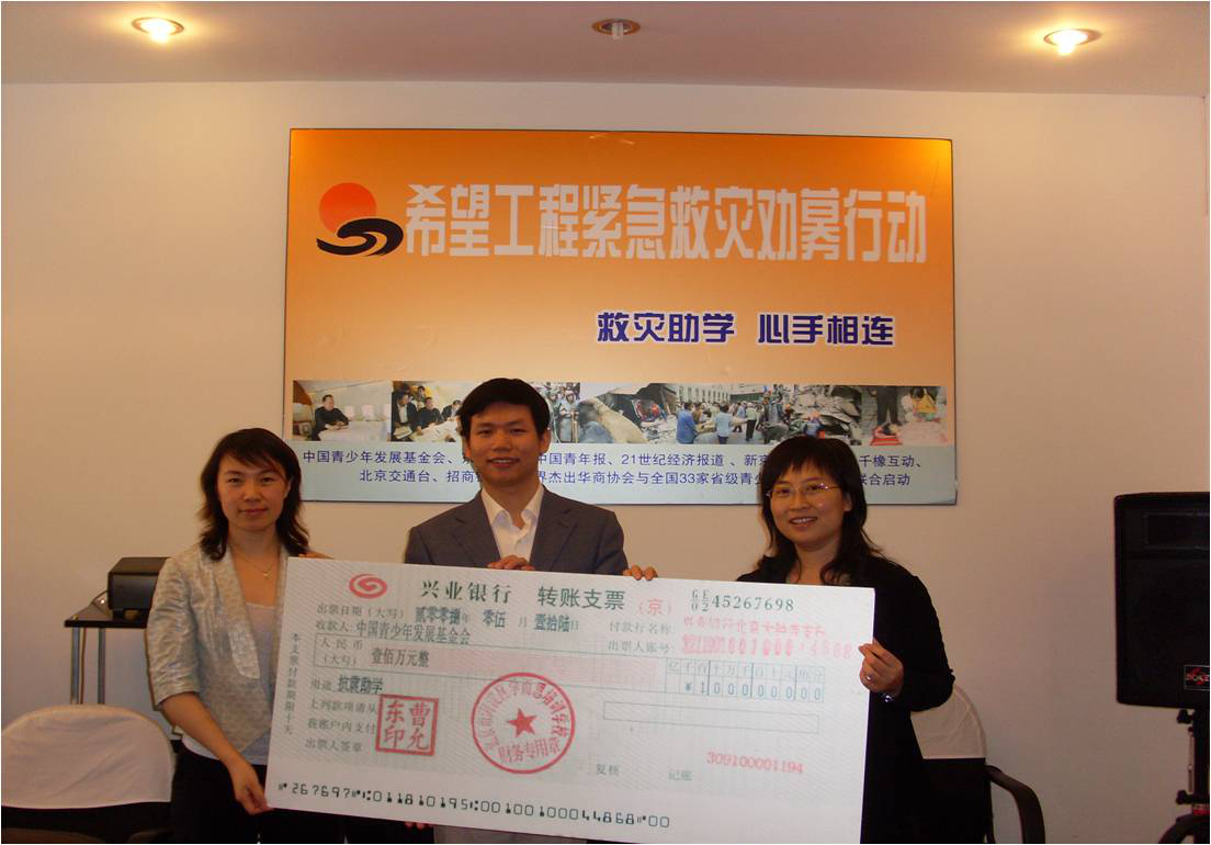 汶川地震發(fā)生后,學而思為災(zāi)區(qū)捐助款項200萬元,用于救災(zāi)助學。同年,第一所希望小學也在甘肅禮縣確認落實。