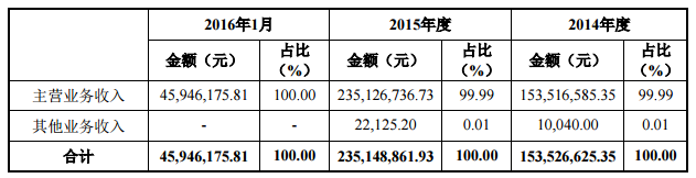 轉(zhuǎn)讓說明書顯示,2014年度、2015年度、2016年1月,公司主營業(yè)務(wù)收入分別為1.53億元、2.35億元、4595萬元;凈利潤分別為1217萬元、3067萬元、998萬元。