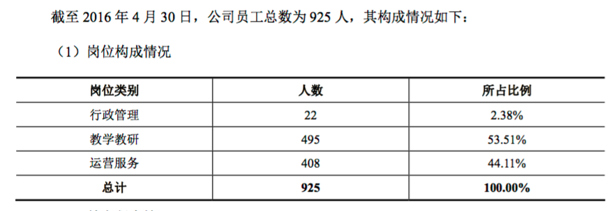 截止2016年4月30日,高思教育共有925人。具體人員構(gòu)成情況如下: