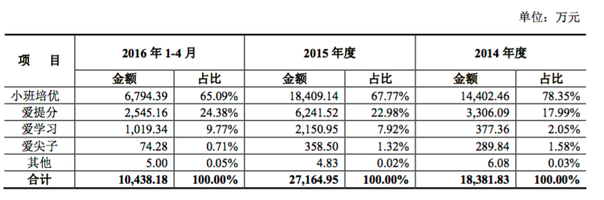 高思教育在說明書中稱,愛學(xué)習(xí)業(yè)務(wù)收入在報(bào)告期內(nèi)的整體規(guī)模和占比呈現(xiàn)快速增長(zhǎng)趨勢(shì),2016 年1-4月收入1019.34萬元,占比達(dá)到 9.77%,主要是“愛學(xué)習(xí)”在線教學(xué)平臺(tái)已經(jīng)與上海昂立教育、廣州卓越教育、巨人教育等達(dá)成合作關(guān)系。