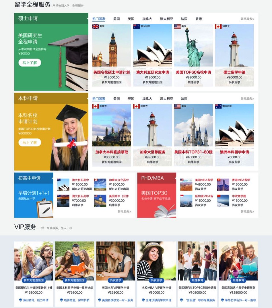 京東留學(xué)在分類上,留學(xué)國家包括美國、英國、德國、澳大利亞、法國、新西蘭、加拿大、日本 、新加坡;學(xué)科以工科、商科、理科、文科、藝術(shù)、醫(yī)科為主;申請類型包括本科、研究生、MBA。另外,京東留學(xué)給用戶提供留學(xué)后服務(wù)。