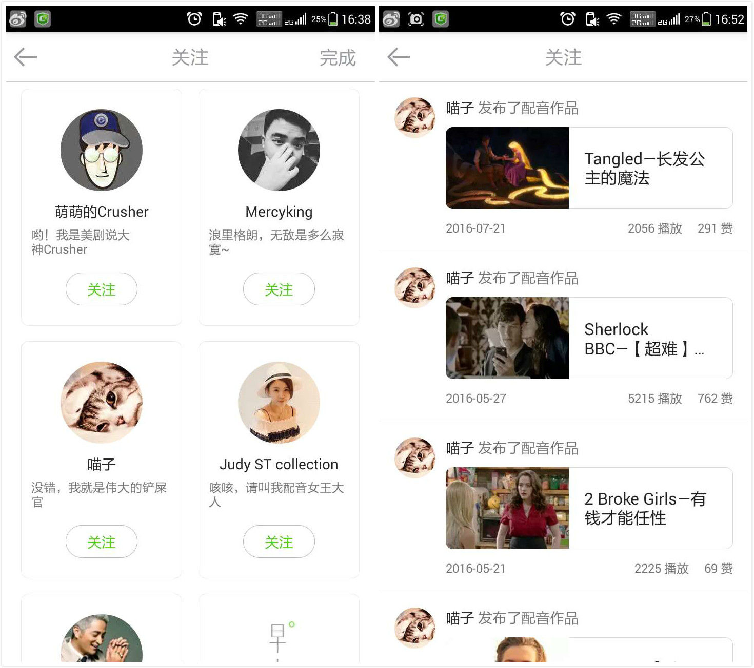 多知網(wǎng)發(fā)現(xiàn),英語流利說4.0版在原來的基礎(chǔ)上新加了“關(guān)注”欄目,點擊進入后,是英語入駐流利說社區(qū)的英語達人的推薦。用戶關(guān)注喜愛的達人后,系統(tǒng)即可推送達人的最新帖子或作品。