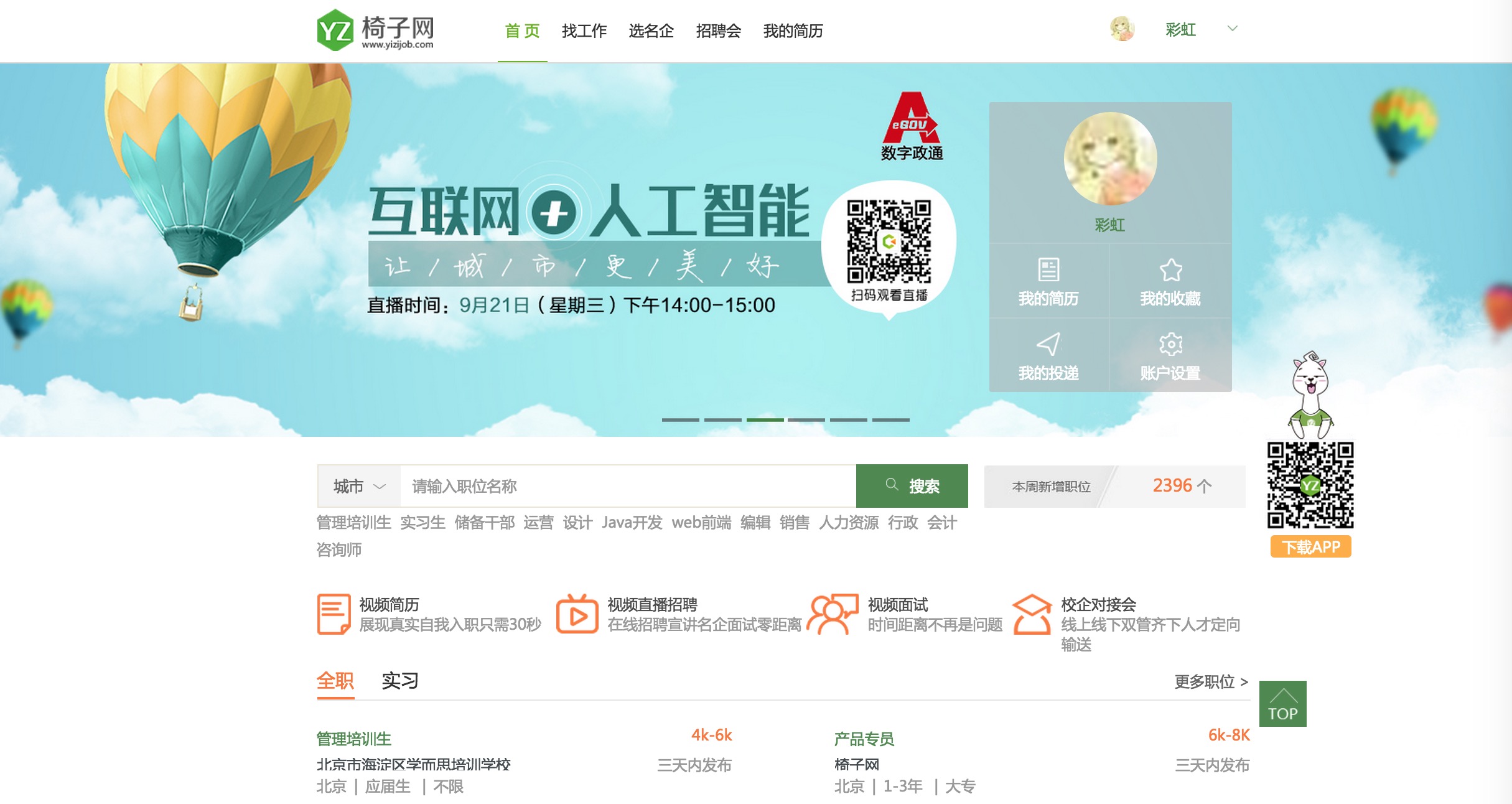 官網(wǎng)顯示,椅子網(wǎng)結(jié)合傳統(tǒng)文字簡歷,推出了“牛人視頻簡歷”欄目,讓求職者以30秒的短視頻形式投遞給企業(yè)。視頻中求職者進(jìn)行自我介紹、展示求職者的興趣愛好及介紹求職者的工作經(jīng)驗(yàn)等。同時(shí),視頻簡歷也會(huì)配以文字簡歷一同投遞給企業(yè)方,一旦企業(yè)方對(duì)該求職者比較滿意,可以發(fā)出視頻面試的邀請(qǐng)。