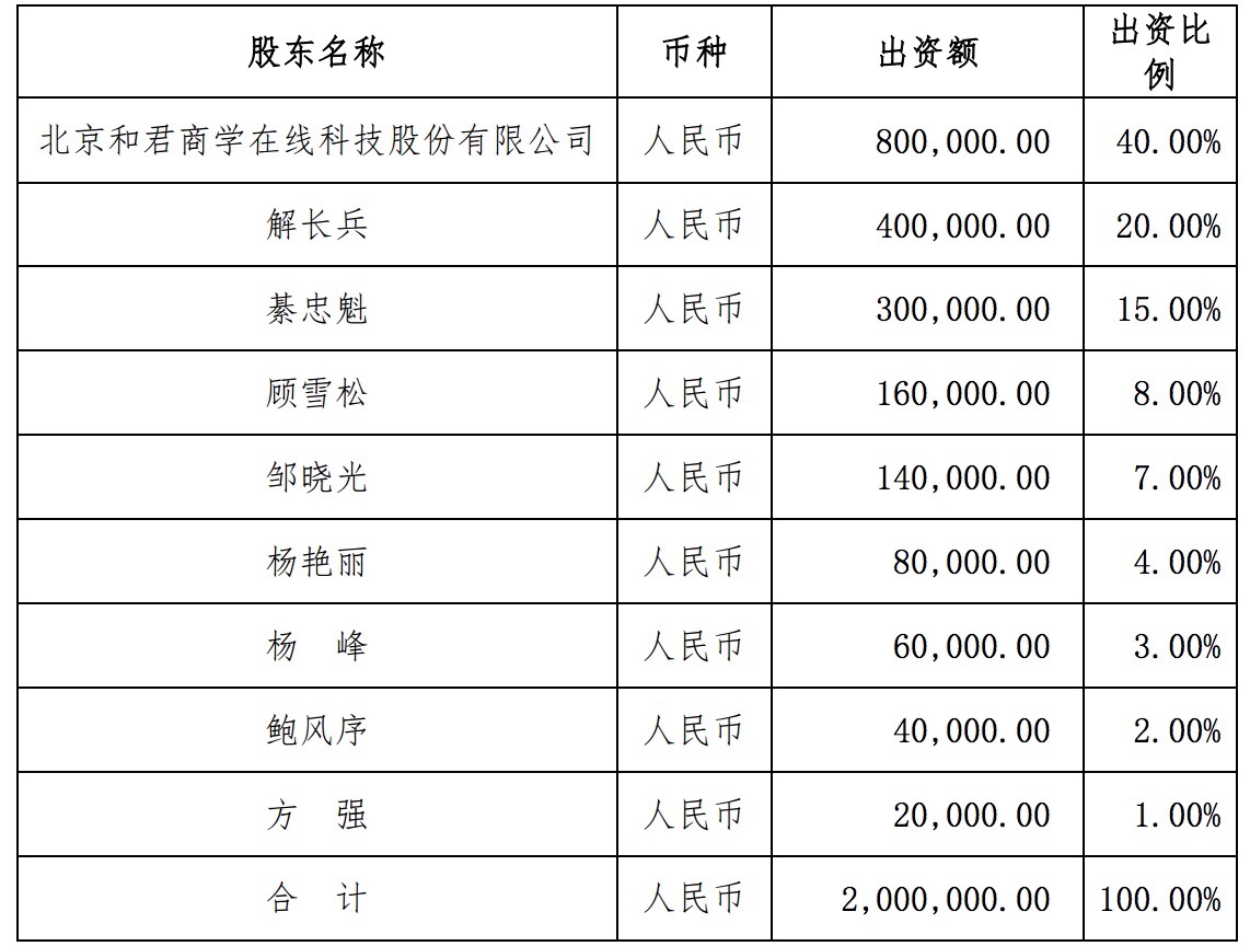 報告稱,君為教育的注冊資本為200萬元,和君商學(xué)使用募集資金出資400萬元,其中80萬元為君為教育注冊資本,占君為教育注冊資本的40.00%,其余 320萬元計入君為教育資本公積。