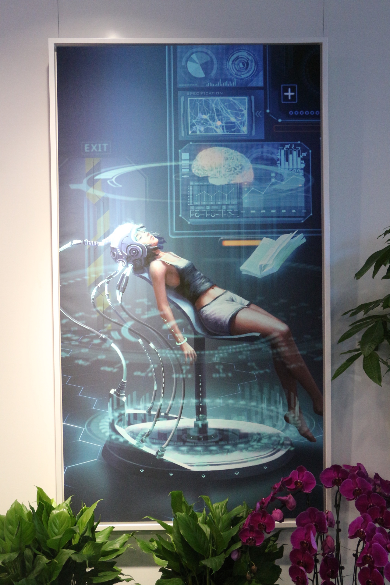 另一幅則是想象中未來的學(xué)習(xí)場(chǎng)景:運(yùn)用科技手段,即可將知識(shí)輸送進(jìn)學(xué)生的大腦。