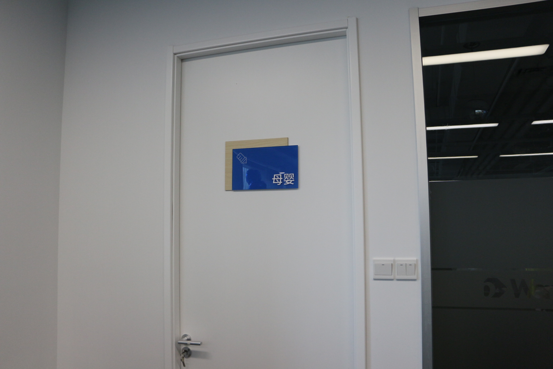 走到下面這間屋子,門牌畫風(fēng)突變。工作人員介紹,這是為一名下個(gè)月即將入職的新媽媽準(zhǔn)備的“母嬰室”。