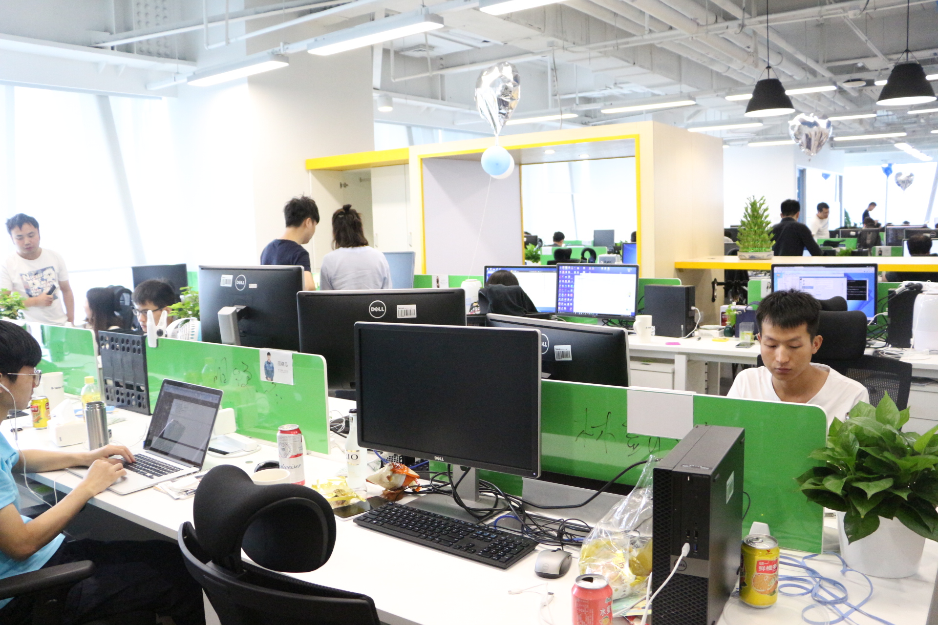 辦公區(qū)以綠色為主,隨處可見綠植和綠板。