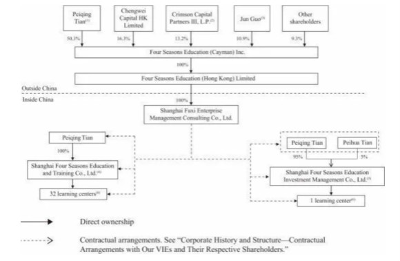 招股書顯示,2007年3月,上海四季教育投資管理有限公司開始運營,2014年6月,四季教育(開曼)公司納入擬議的上市實體。此外,2014年6月,四季教育開曼在香港成立全資子公司“四季教育香港”。2014年12月,上海弗兮企業(yè)管理咨詢有限公司成為四季教育香港的全資附屬公司。