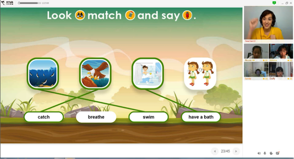 課程研發(fā)層面,1對4精品班課課程內(nèi)容使用美國同齡小學(xué)教材,結(jié)合教育部教學(xué)大綱,針對中國孩子進(jìn)行改編。在課堂設(shè)計(jì)上,也加入了分組討論和PK的功能及環(huán)節(jié),培養(yǎng)學(xué)員的競爭和團(tuán)隊(duì)協(xié)作意識,提升綜合能力。