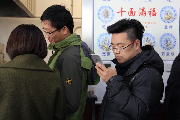 路上,黎小說和團(tuán)隊(duì)來到離清華科技園不太遠(yuǎn)的占國牛肉面,他一人承包了點(diǎn)餐取面的所有流程。在等面的間隙,他打開手機(jī),處理微信。