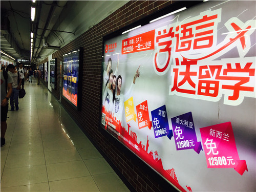 海淀黃莊作為培訓(xùn)行業(yè)的“命門”,其地鐵站的宣傳位更是商家必爭之地,不過急匆匆忙著上班打卡的人們可顧不上這些,即便面對的是新東方長達(dá)60米的廣告。
