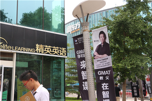 環(huán)球雅思更是獨(dú)占新中關(guān)要道,將廣告打到了“家門口”。