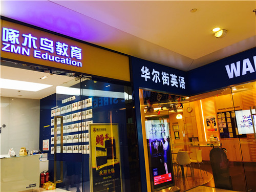 華爾街和啄木鳥緊緊相依,從透明的玻璃窗向內(nèi)看,老師和學(xué)員并不多。路過華爾街時,一位老師正在和家長說“建議先讓孩子做一個英語水平測試……”