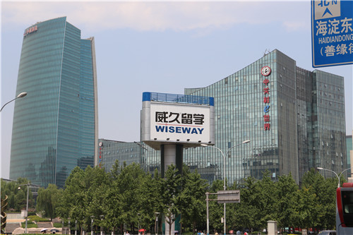 在這樣環(huán)境下,培訓(xùn)機(jī)構(gòu)們也都選擇著最有利的地形。高樓林立間,威久留學(xué)的廣告一舉拿下制高點(diǎn)。