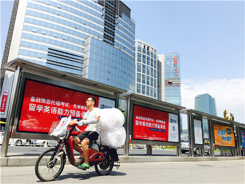 有人選擇“門面擔(dān)當(dāng)”,也有人看準(zhǔn)“交通要道”。新航道選擇了公交車站牌和一些站崗?fù)ぁ?/p>