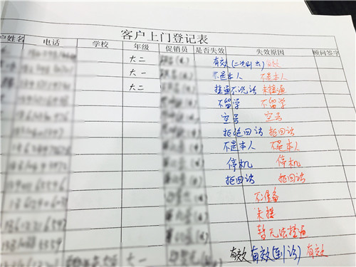 記者在另一家機(jī)構(gòu)翻看地推的登記簿,發(fā)現(xiàn)即便是成功留下了基本信息,當(dāng)電話回訪時,有效回復(fù)仍如鳳毛麟角,少得可憐。