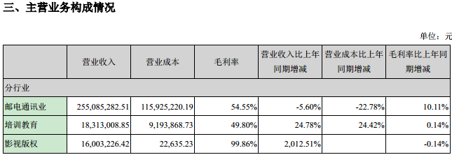 拓維信息主營業(yè)務(wù)按行業(yè)劃分為郵電通訊業(yè)、培訓(xùn)教育、影視版權(quán),其中培訓(xùn)教育營收1831萬元,同比增長24.78%。按產(chǎn)品分為教育服務(wù)和手機(jī)游戲,其中教育服務(wù)營收1.1億。