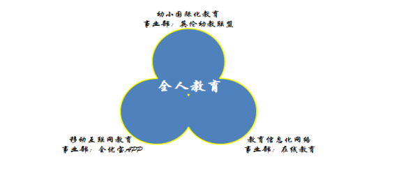 全人教育下設(shè)幼小國(guó)際化教育事業(yè)部、移動(dòng)互聯(lián)教育事業(yè)部、教育信息化網(wǎng)絡(luò)事業(yè)部三大事業(yè)部。