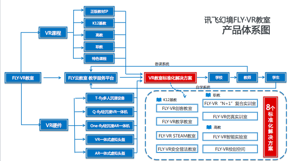 自2011年起,科大訊飛就啟動了對訊飛幻境的產(chǎn)業(yè)設計,并開始設計研發(fā) VR、AR 等產(chǎn)品,目前訊飛幻境教育解決方案主要包含VR課程、FLY·VR教室、VR硬件三部分,通過三種服務形成訊飛幻境FLY·VR教室體系,幫助學校建立VR教育整體內(nèi)容。