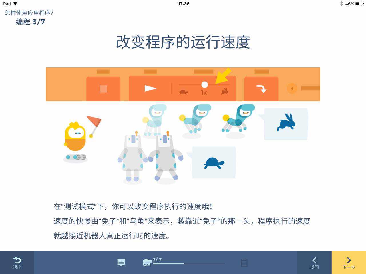 在剛開始自助編寫程序的之前,小助手機器人會通過視頻教學。用一步一步引導的方式,進階性地對每一段代碼進行理解,比如,如何讓燈泡亮起來,每一個程序指令意味著什么,讓孩子對編程有個初步的概念,并形成自己的認識,在每次編程結束后,還會有一道小習題來考察小朋友對于知識的理解。