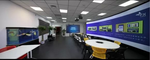 這面130寸LED液晶屏,代替了大部分公司常見(jiàn)的前臺(tái)形象墻,吸引著來(lái)客的目光。大廳右側(cè),則是一個(gè)300寸的環(huán)形幕布。幕布前方,整齊地?cái)[放著幾排椅子。這一切,儼然就是一個(gè)雙師課堂教室的縮影。負(fù)責(zé)人介紹說(shuō),這是威渡科技的“體驗(yàn)中心”,300寸大幕是為大型教室或階梯教室準(zhǔn)備的解決方案。
