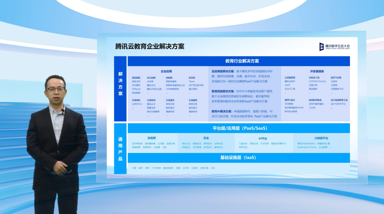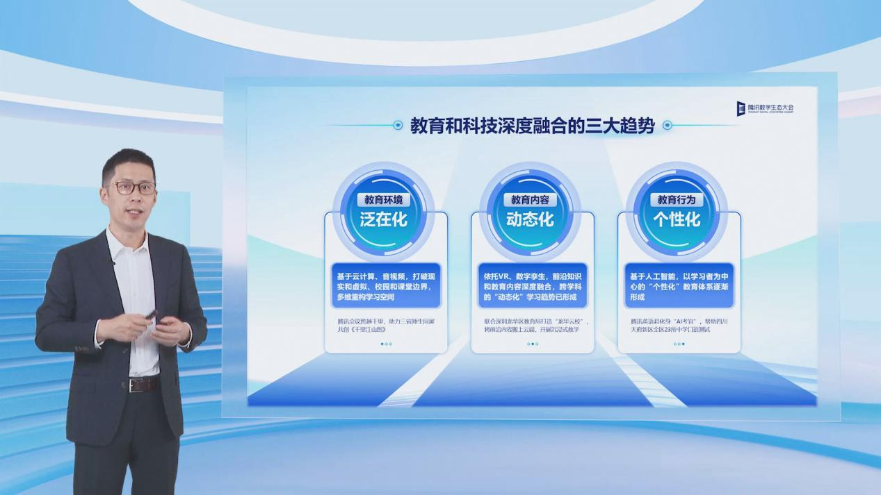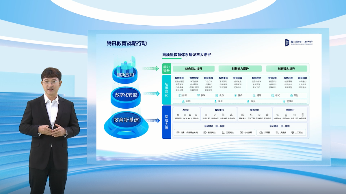 在基礎教育領域,騰訊云副總裁、騰訊教育副總裁王麒介紹,騰訊教育將從三大路徑出發(fā),用科技助力基礎教育高質量教育體系構建。