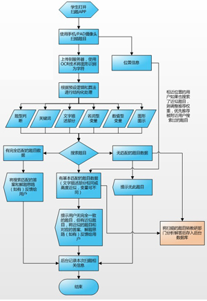 基于對(duì)現(xiàn)狀的分析和新產(chǎn)品的要求,筆者認(rèn)為新產(chǎn)品應(yīng)定位于幫學(xué)生作題減負(fù),即通過(guò)APP調(diào)用手機(jī)攝像頭掃描題干,上傳到云端進(jìn)行OCR識(shí)別后搜索匹配的答案和解題思路,反饋給用戶(hù)。
