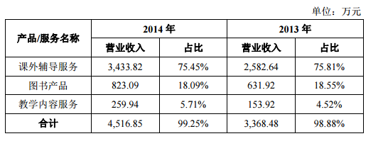 佳一教育2014年主營業(yè)務(wù)收入4659萬元人民幣,凈利潤1004萬元。2014年營業(yè)收入較2013年增加1163萬多元,增幅34.15%。營業(yè)收入增長的主要原因是:近年來隨著家長對中小學(xué)教育的重視程度提高以及升學(xué)的壓力,需要在課外進(jìn)行輔導(dǎo)培訓(xùn)獲得提高。