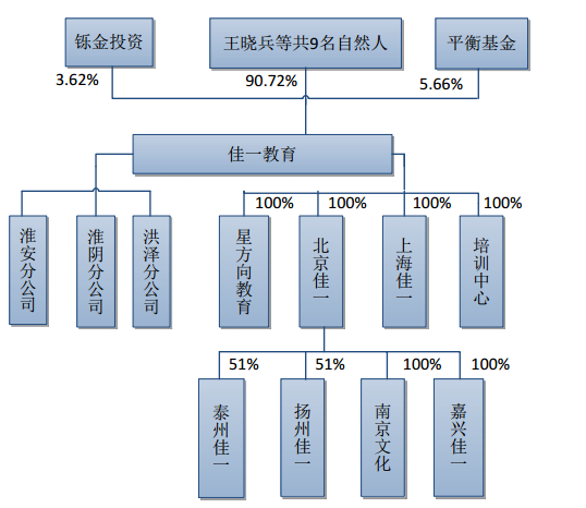 截至本公開轉(zhuǎn)讓說明書簽署日,佳一教育的股權(quán)控制關(guān)系如下圖所示: