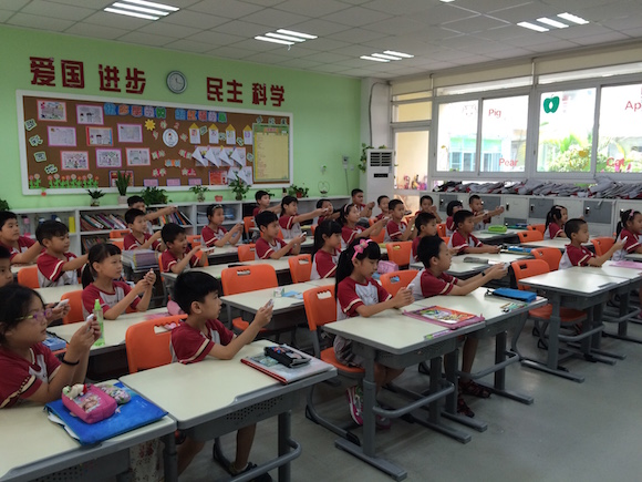在課堂場景下,學(xué)生使用學(xué)信班級通完成聽課到效果檢驗(yàn)的全過程,班級通由教師機(jī)和若干學(xué)生機(jī)組成,能夠在課堂場景下完成點(diǎn)名、全員回答和強(qiáng)大等功能。老師在PPT中設(shè)置互動環(huán)節(jié),并要求學(xué)生通過學(xué)生機(jī)端進(jìn)行相應(yīng)操作,能夠在課堂進(jìn)行的不同時間點(diǎn)根據(jù)學(xué)生的互動情況監(jiān)測到學(xué)生參與情況和成績。例如,老師在PPT中隔一段插入一個互動題目,要求學(xué)生通過學(xué)生機(jī)實(shí)時作答,并能夠?qū)崟r收集到每個學(xué)生的答題用時和答案,以此掌握到學(xué)生的課堂參與情況。