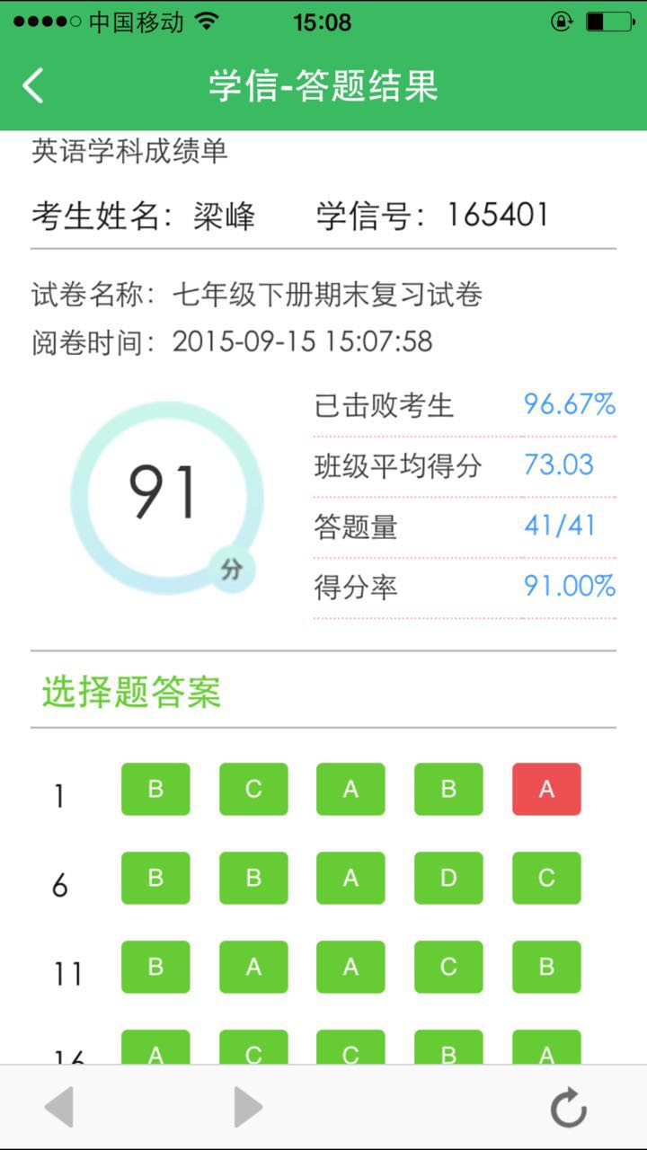 對于課后作業(yè)和小型考試,學(xué)信的手機(jī)閱卷功能供老師快速批改,老師先將主觀題做批改后,使用APP中的手機(jī)閱卷功能,掃一掃即可獲得本份試卷的總分,并為學(xué)生建立錯題本。“以前大型考試用到的答題每張需要兩毛錢,雖然單張并不貴,但是如果考試多了也會為學(xué)校帶來相當(dāng)大的成本,而手機(jī)閱卷對卷子的紙張本身并沒有要求,學(xué)校使用的那種很薄的速印紙也能夠識別。”朱兆偉表示。