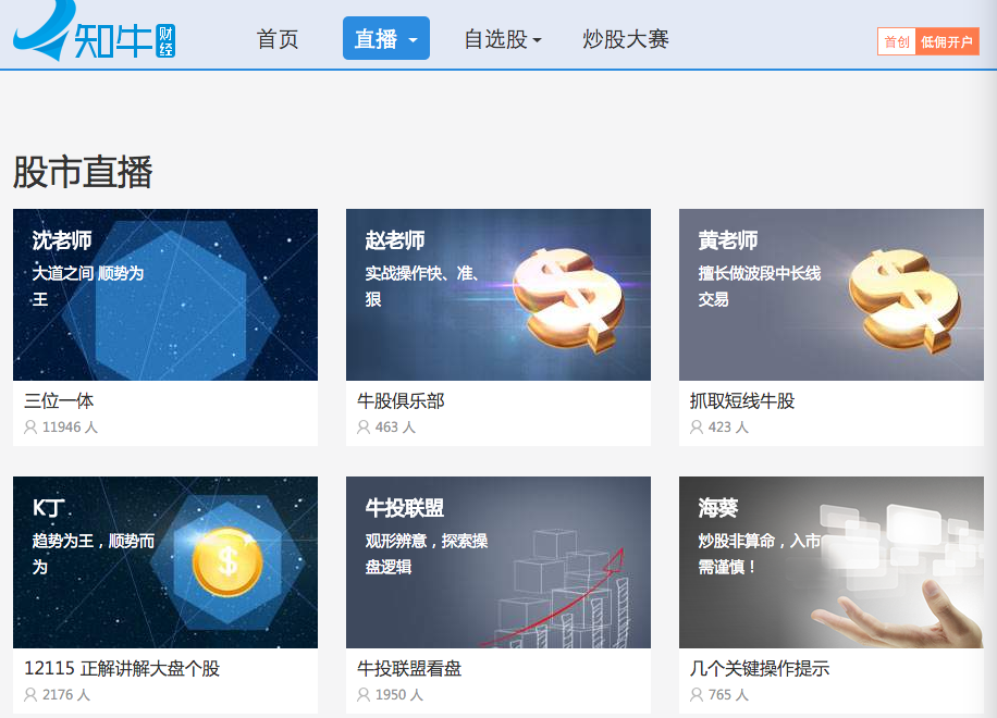 知牛財(cái)經(jīng)定位股市達(dá)人直播互動平臺,邀請知名操盤手等,通過視頻直播的形式,向用戶提供炒股教學(xué)指導(dǎo)。希望憑借其講師的權(quán)威性、視頻直播的高效性等因素,在財(cái)經(jīng)股市資訊站中彎道超車。