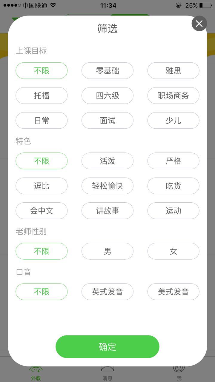 與其它幾款語伴軟件類似,在多獅口語的主界面上可以看到教師的國籍、在線狀態(tài)及交流次數(shù)。另外,用戶可以通過“上課目標(biāo)”“特色”“口音”等選項(xiàng)篩選出更適合自己的老師。