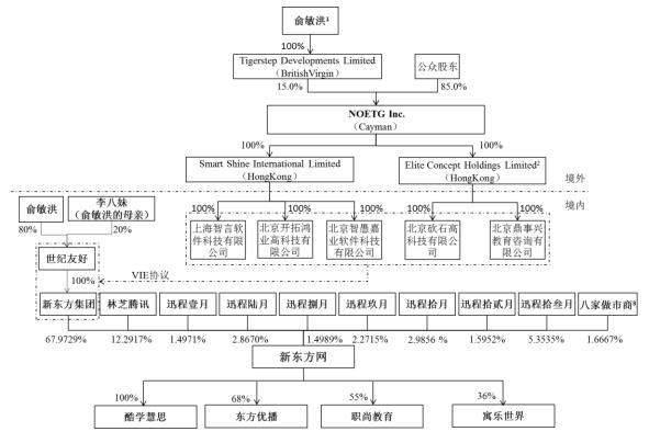 新東方集團(tuán)持有公司67.9729%股份,是公司的控股股東。股權(quán)結(jié)構(gòu)圖如下:
