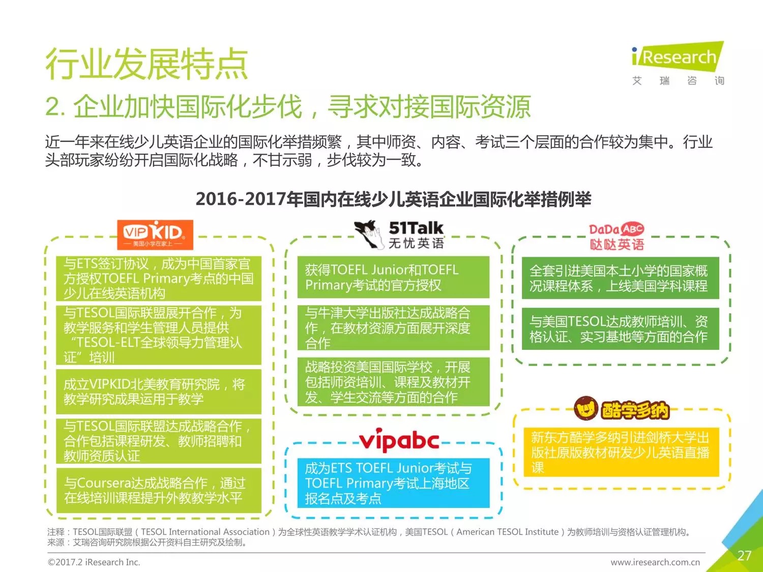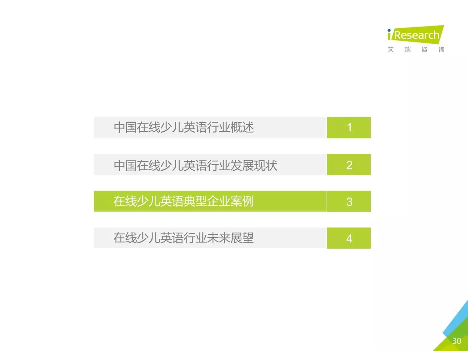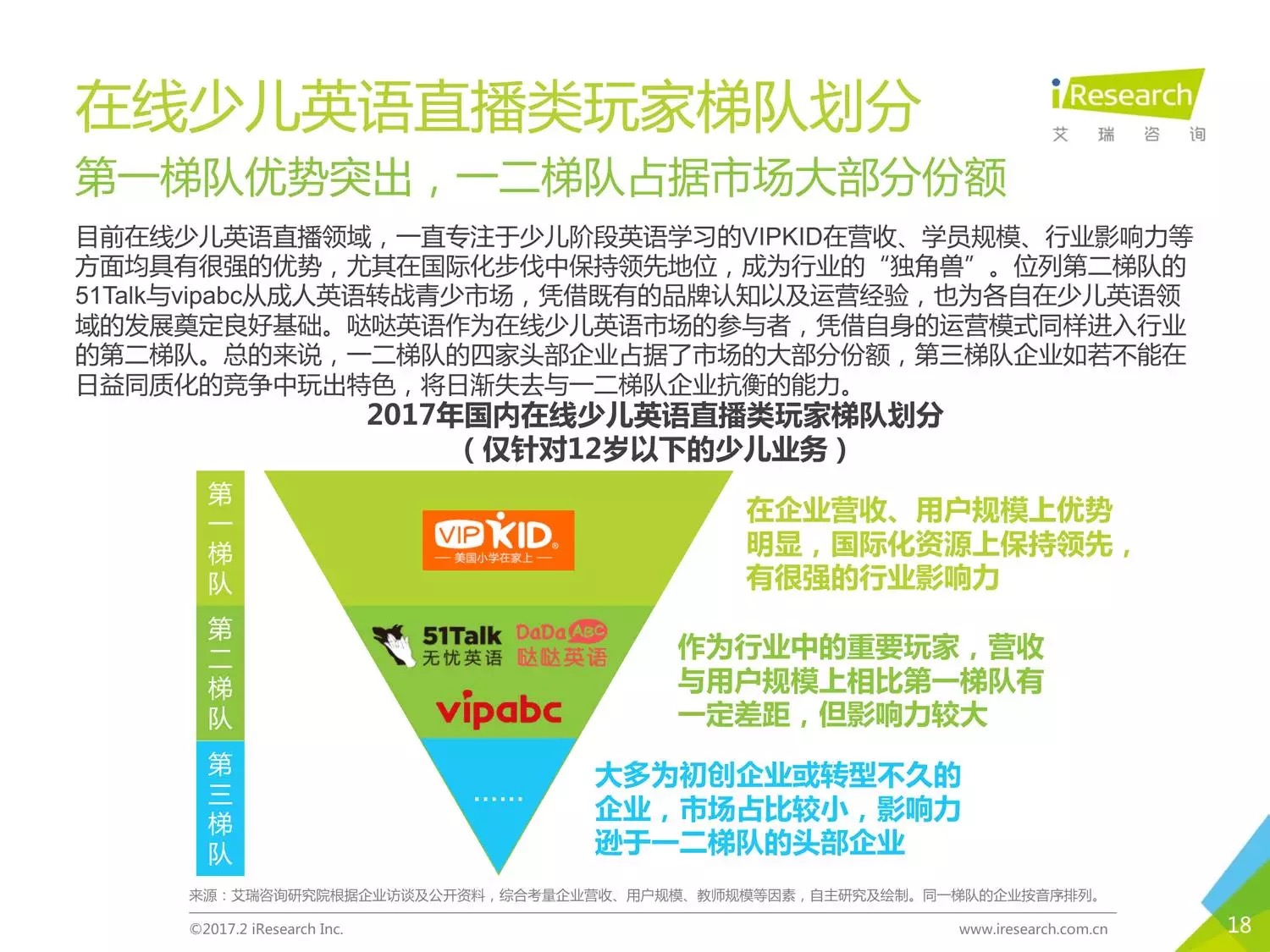 本報(bào)告以時(shí)下幾家比較受關(guān)注的公司為聚焦點(diǎn),闡述了現(xiàn)在線少兒英語(yǔ)的發(fā)展?fàn)顩r。
