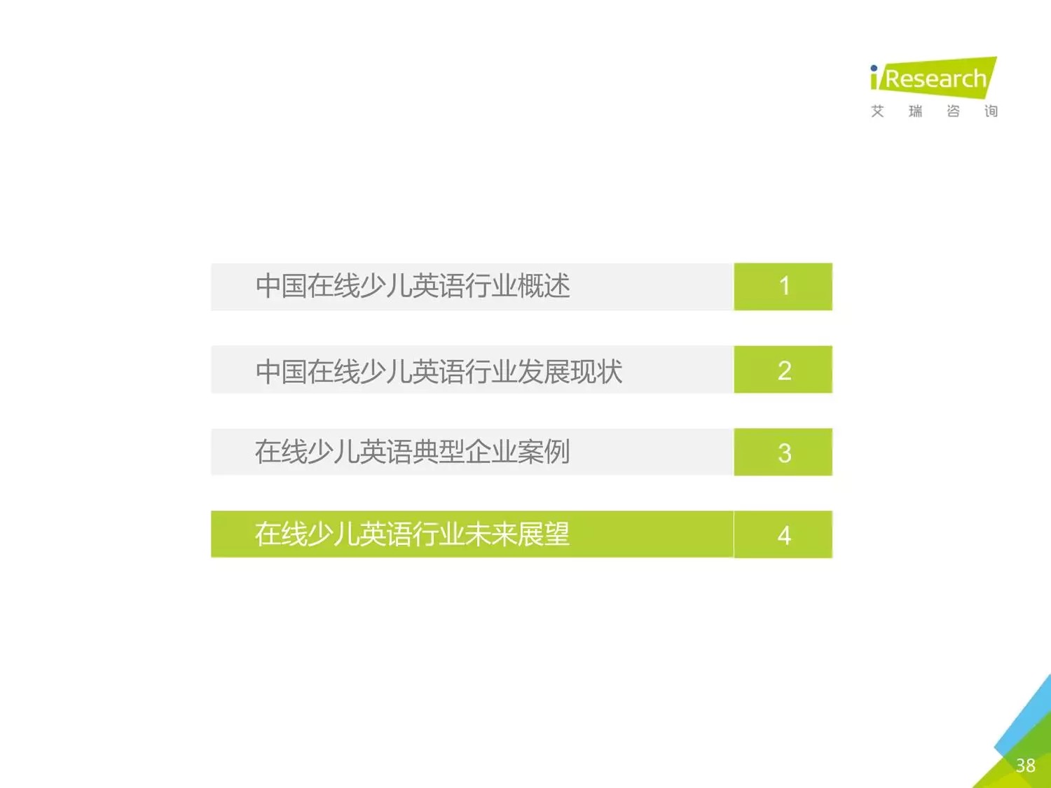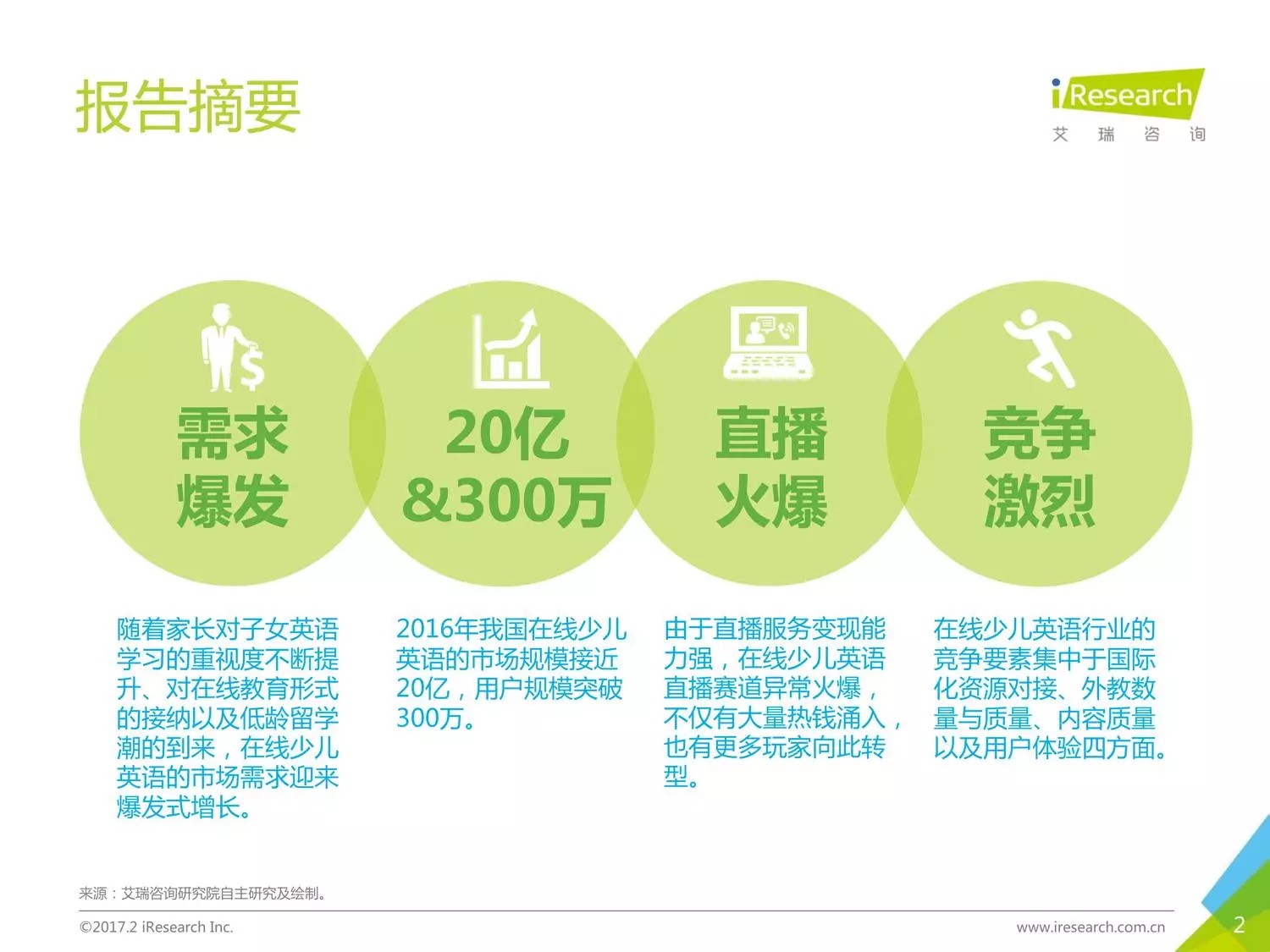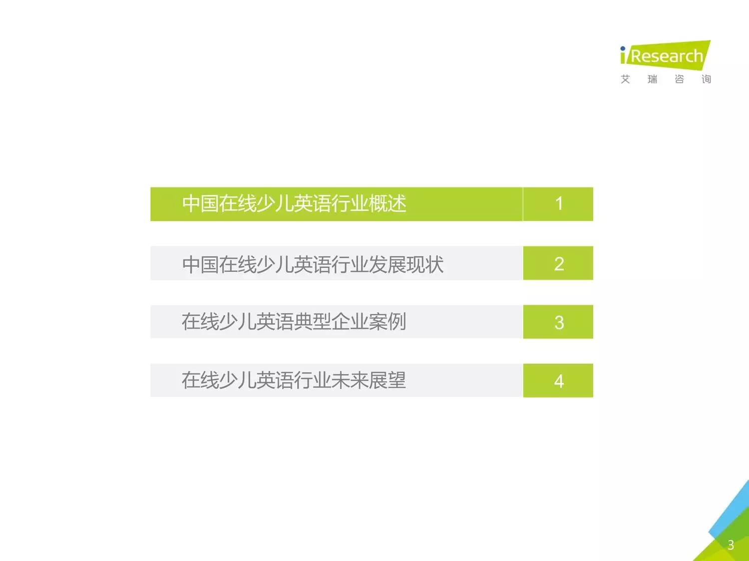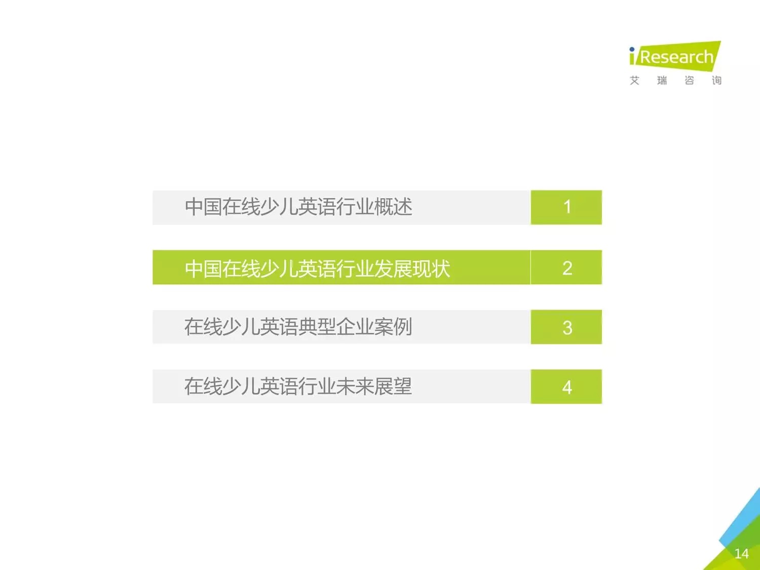 本報(bào)告以時(shí)下幾家比較受關(guān)注的公司為聚焦點(diǎn),闡述了現(xiàn)在線少兒英語(yǔ)的發(fā)展?fàn)顩r。