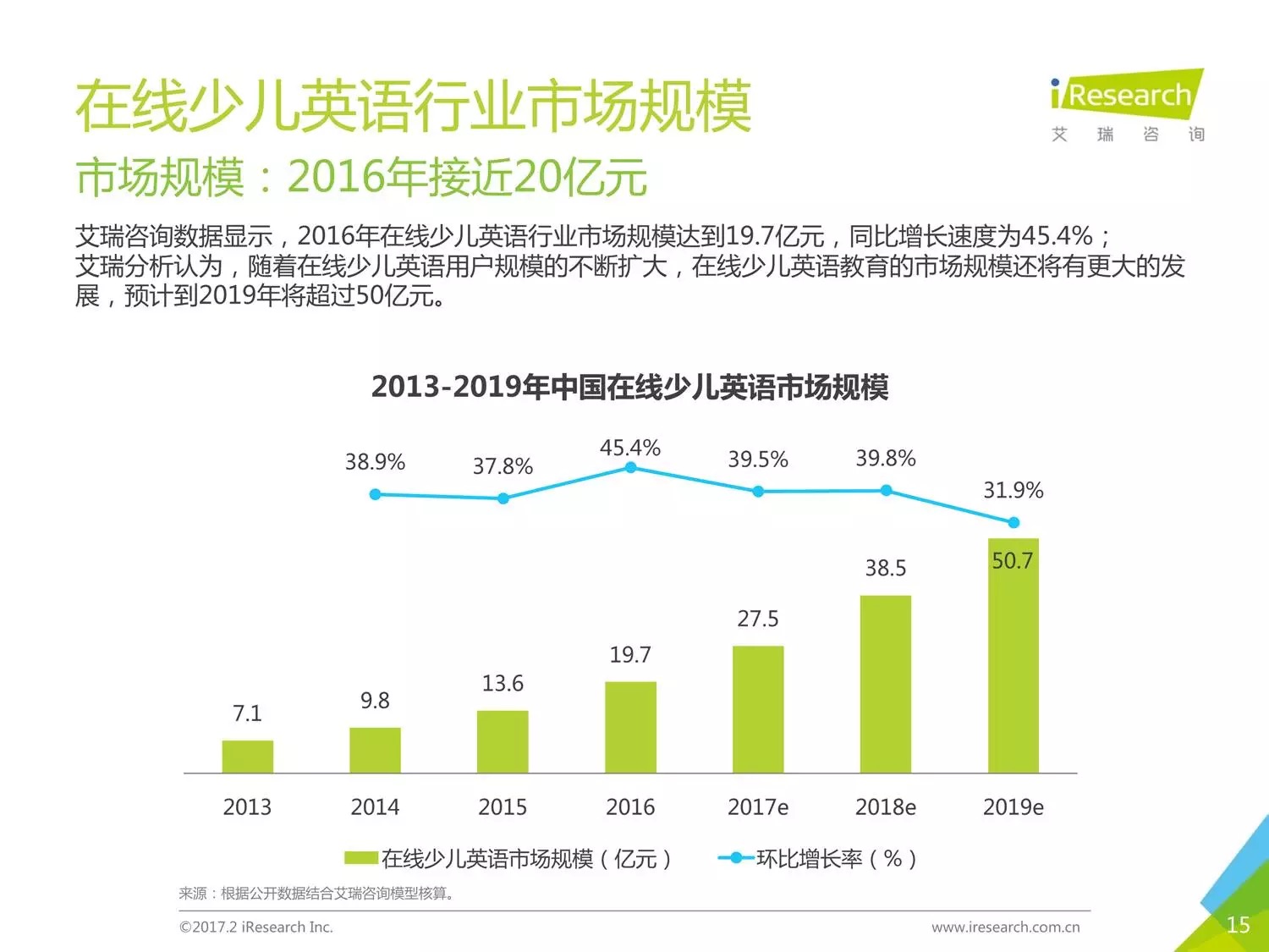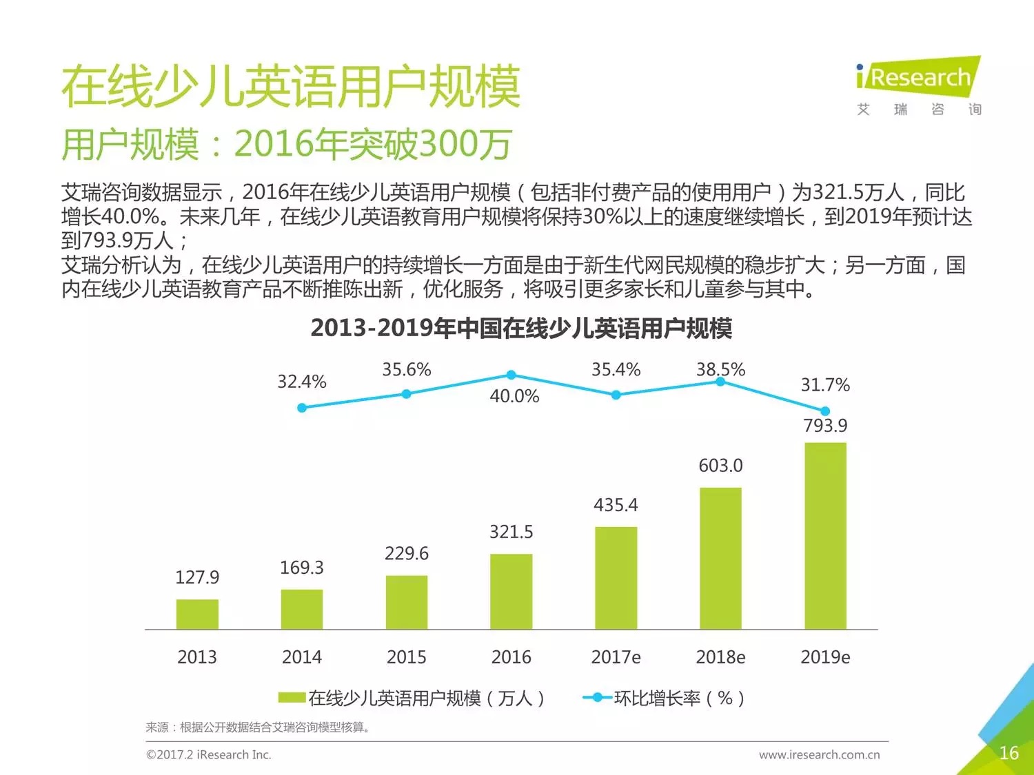 編者按:在線少兒英語(yǔ)一直是教育領(lǐng)域內(nèi)的熱門(mén)賽道,2016年在線少兒英語(yǔ)的市場(chǎng)規(guī)模接近20億,用戶規(guī)模突破300萬(wàn)。伴隨著高新技術(shù)的誕生與互聯(lián)網(wǎng)服務(wù)的提高,直播、VR等服務(wù)也滲透到了這個(gè)市場(chǎng)。隨著資本的大量涌入,競(jìng)爭(zhēng)也愈加激烈起來(lái)。本報(bào)告以時(shí)下幾家比較受關(guān)注的公司為聚焦點(diǎn),闡述了現(xiàn)在線少兒英語(yǔ)的發(fā)展?fàn)顩r。