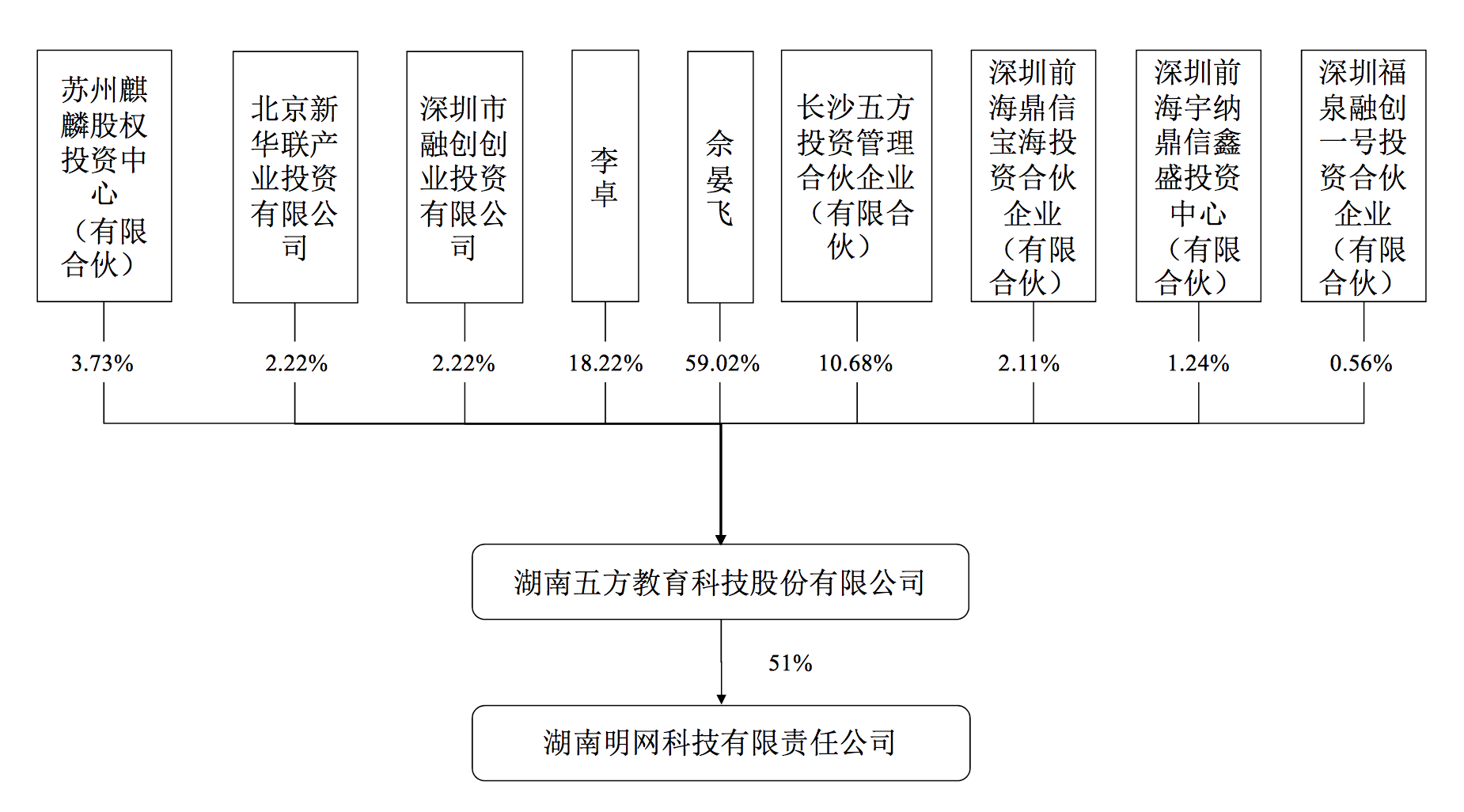 截至目前,五方教育股權(quán)結(jié)構(gòu)圖如下: