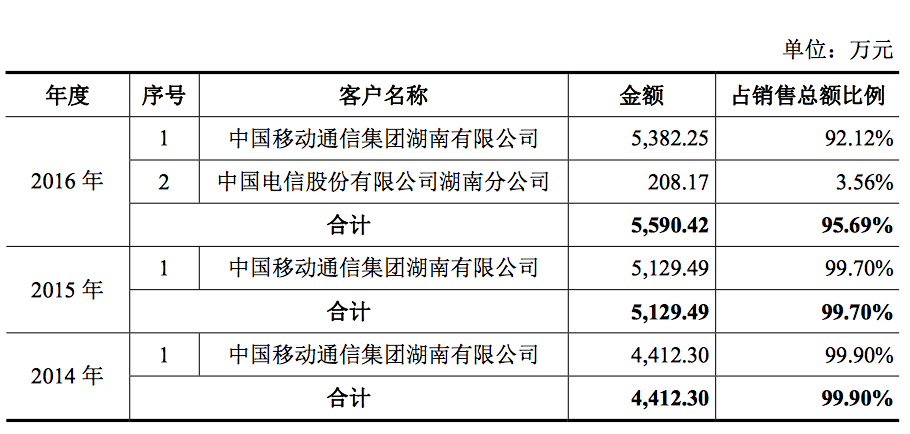 招股書還披露,“客戶集中的風(fēng)險”方面,五方教育在創(chuàng)立初期開始與中國移動湖南有限公司合作,十余年間掌握了湖南省內(nèi)2895所學(xué)校資源。2014年至2016年,從中國移動取得的結(jié)算收入占營業(yè)收入比重均超過90%。目前,家?;臃?wù)是通過中國移動家校互動短信平臺和自有“教育+APP”平臺或人人通平臺同時進(jìn)行,但通過中國移動統(tǒng)一收費(fèi)。若未來出現(xiàn)不能通過中國移動收費(fèi)的政策約束,公司將通過自有APP平臺、人人通平臺、購買的第三方短信通道平臺進(jìn)行服務(wù)和結(jié)算,對公司與運(yùn)營商的合作模式和結(jié)算模式將產(chǎn)生一定影響。