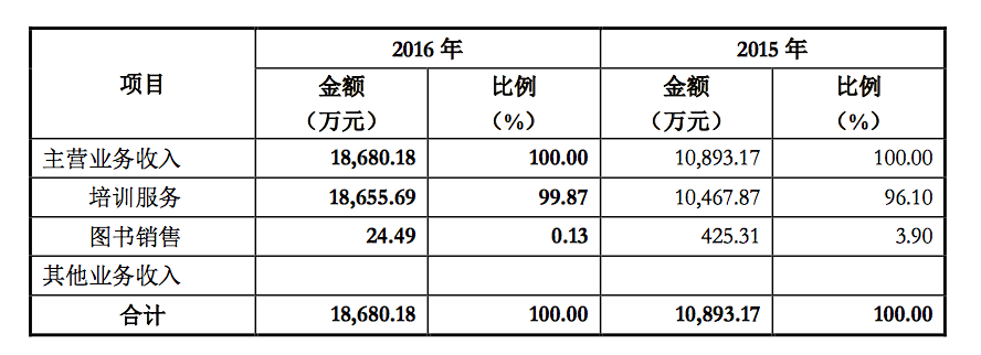 培訓(xùn)業(yè)務(wù)占全部營(yíng)業(yè)收入90%以上,具體情況如下: