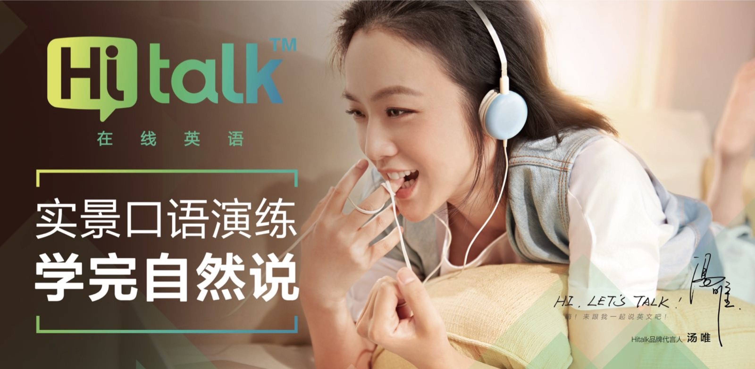這個(gè)周末,北京和上海的地鐵大屏廣告開(kāi)始了新一波刷屏。這一次的主角是湯唯,和她一起出現(xiàn)的,是滬江網(wǎng)校旗下的在線成人英語(yǔ)新品牌”Hitalk”。