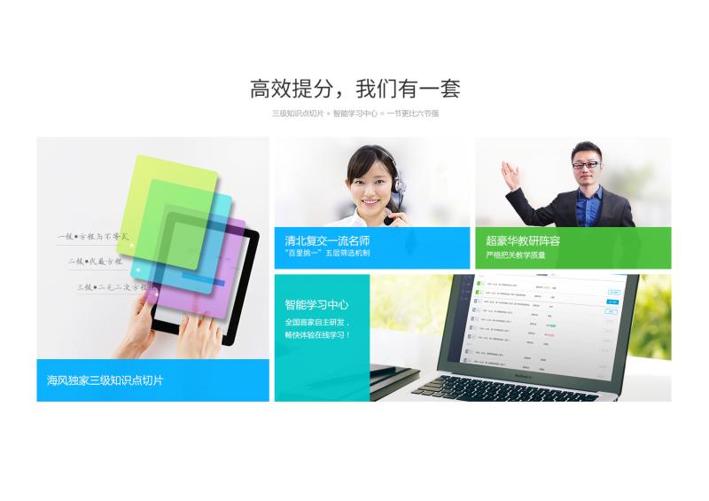 目前,海風(fēng)教育有學(xué)科培優(yōu)、自主招生輔導(dǎo)兩大課程服務(wù)體系。教學(xué)體系包括十二個(gè)年級(jí)、全學(xué)科、所有考綱、各種難度層次內(nèi)容。通過“中央廚房式”教研后臺(tái)數(shù)據(jù)庫,對(duì)教學(xué)過程進(jìn)行全程記錄并通過大數(shù)據(jù)分析對(duì)教學(xué)工作中的各個(gè)環(huán)節(jié)。