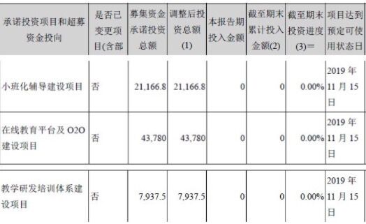 另外,公告還透露,勤上股份在小班輔導建設項目募資2.12億元,在線教育平臺、O2O項目上募資4.38億元,在教研培訓體系上的建設則是7937萬元。