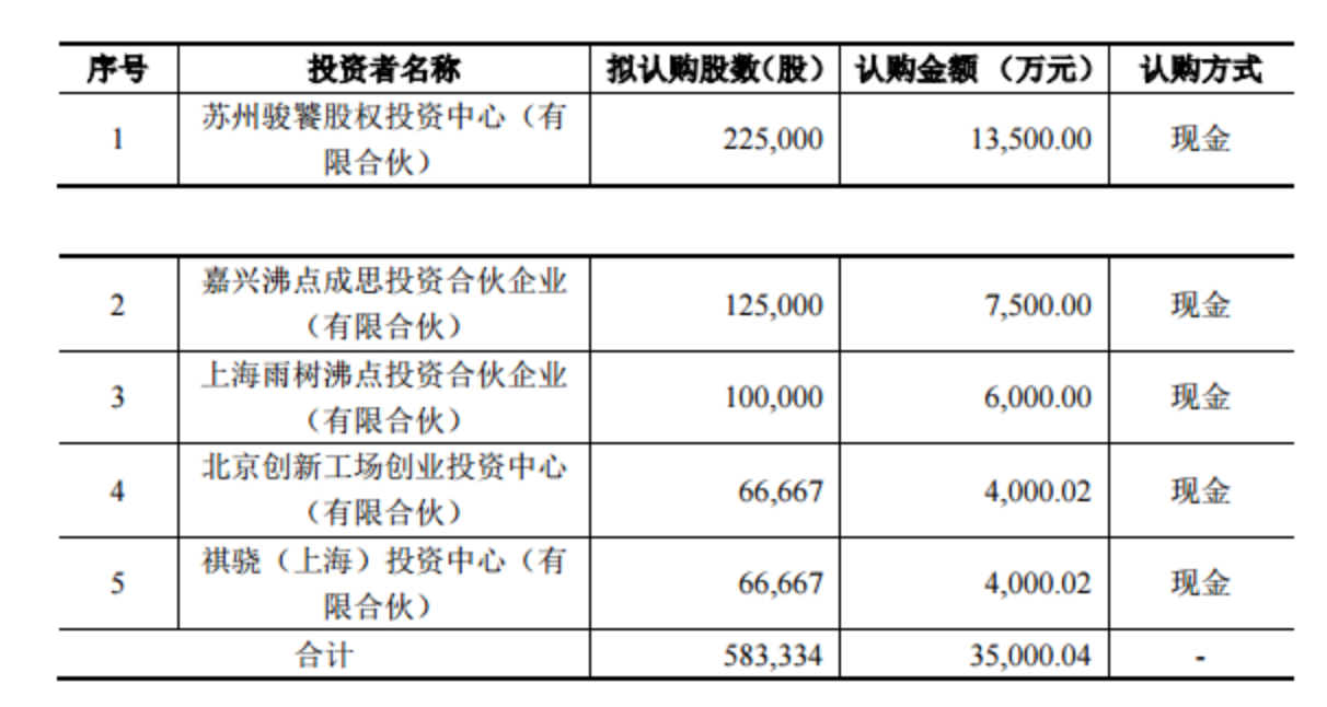 ?公告顯示,華人文化產(chǎn)業(yè)投資基金認(rèn)購1.35億,沸點資本認(rèn)購1.35億,創(chuàng)新工場認(rèn)購4000.02萬,中金公司認(rèn)購4000.02萬,新股合計3.5億。據(jù)了解,另外2億為購買老股。