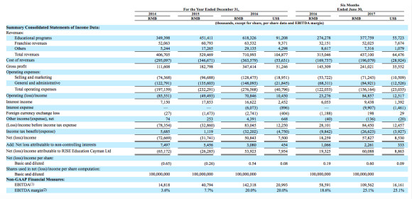 瑞思的招股書顯示,瑞思在2014、2015、2016年的營(yíng)收分別為4.07億元、5.30億元、7.11億元;凈利潤(rùn)分別為6517萬元、2629萬元、5392萬元;瑞思2014和2015年運(yùn)營(yíng)虧損分別為8555萬元和4949萬元,2016年運(yùn)營(yíng)利潤(rùn)7078萬元;2017年上半年?duì)I收4.37億元,比2016年同期的3.15億元增長(zhǎng)38.7%。